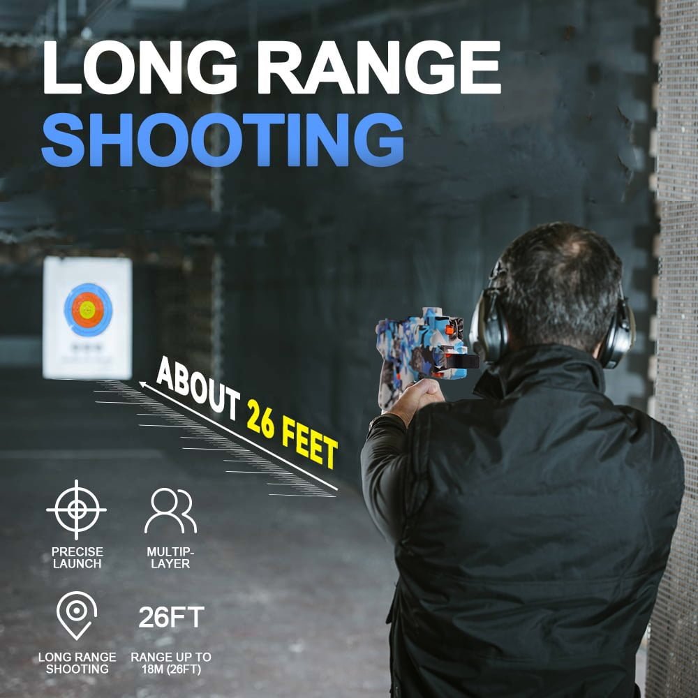 - Just pull the trigger to unleash a continuous stream of water for a smooth, realistic experience. With an impressive 18-meter range, it’s ideal for both long-range and close-quarters play.