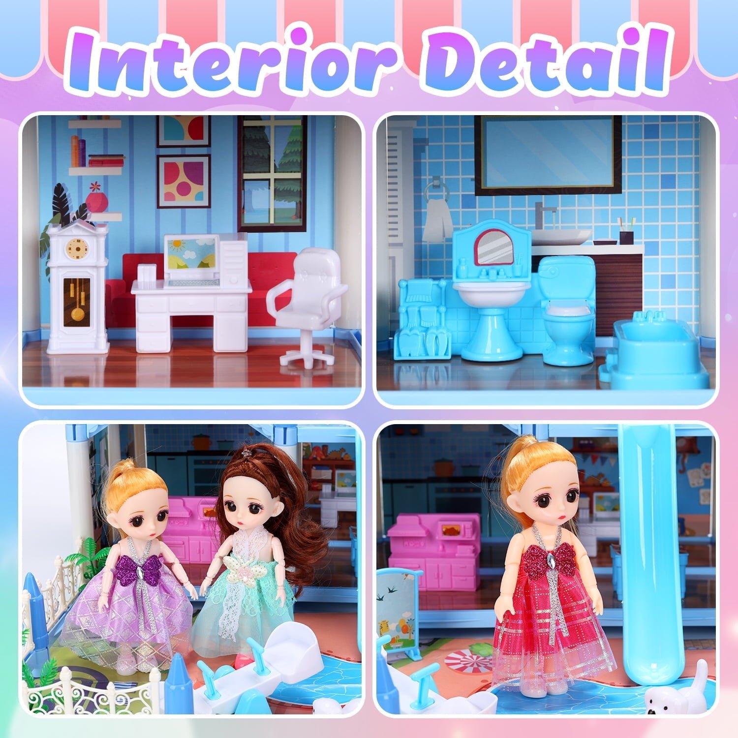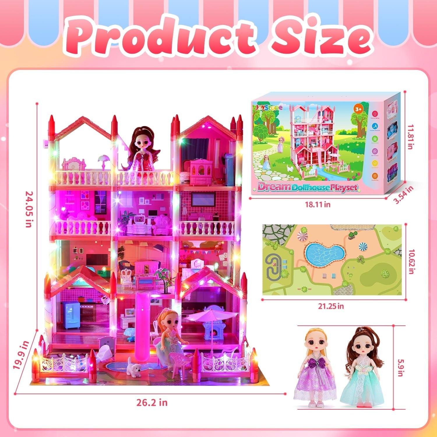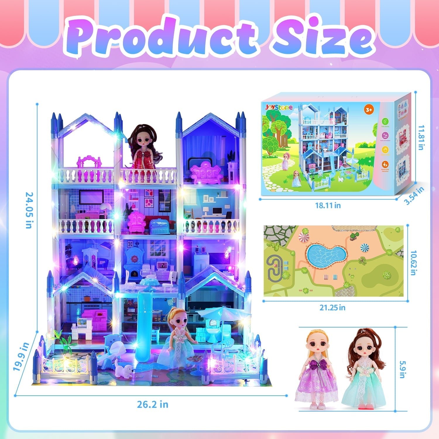 24-inch Girl Dollhouse – There are 14 rooms, 24 inches in size, divided into bedrooms, kitchens, dining rooms, bathrooms, living rooms, study rooms, piano rooms, etc. This dollhouse set can improve children’s hands-on ability and bring a large-scale playhouse experience. It is a great toy gift choice for birthdays, Christmas and Easter!
