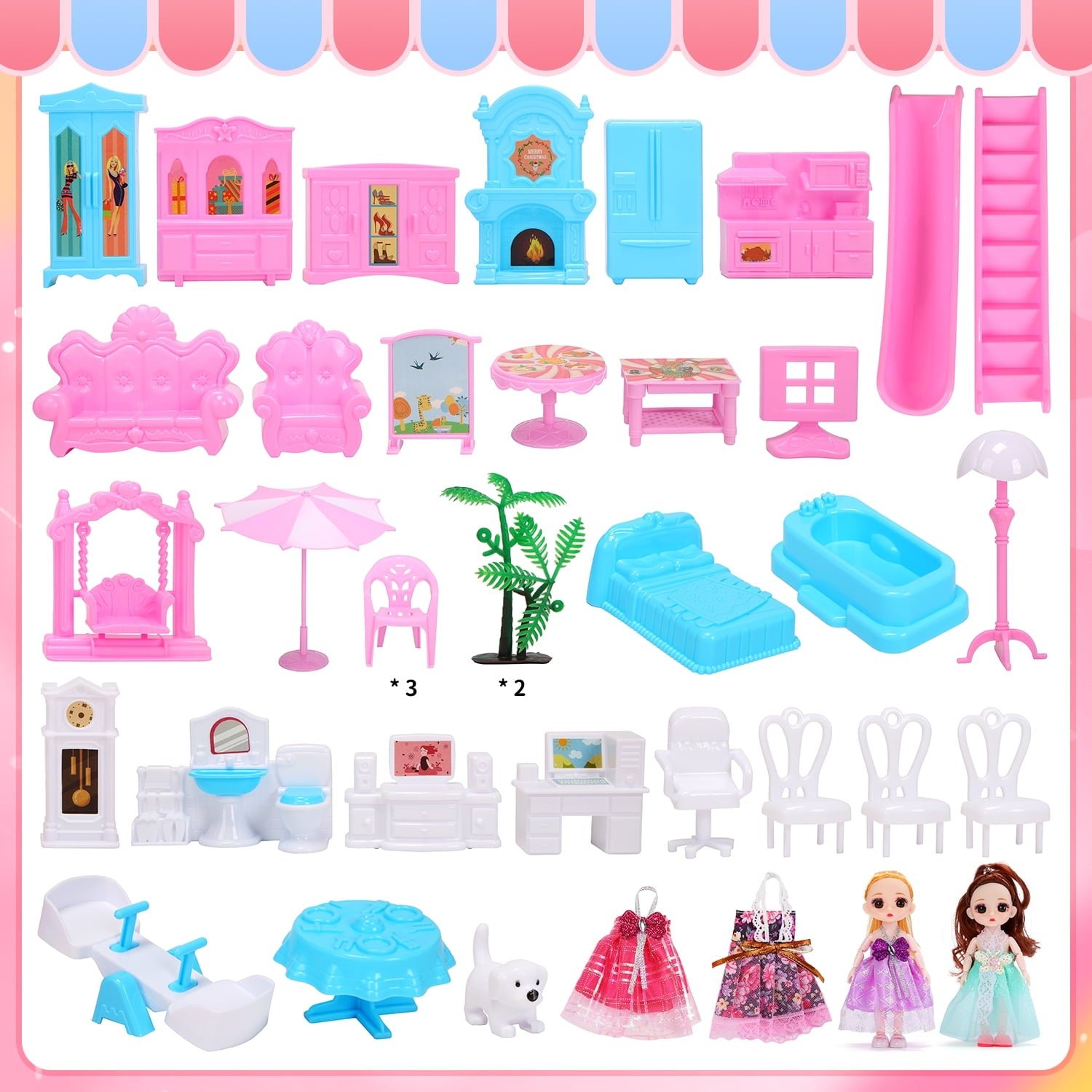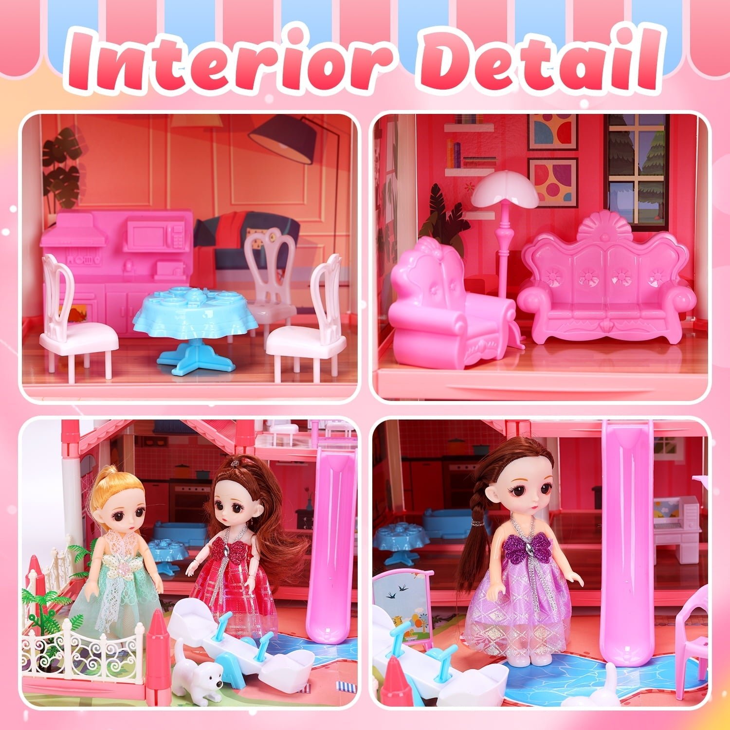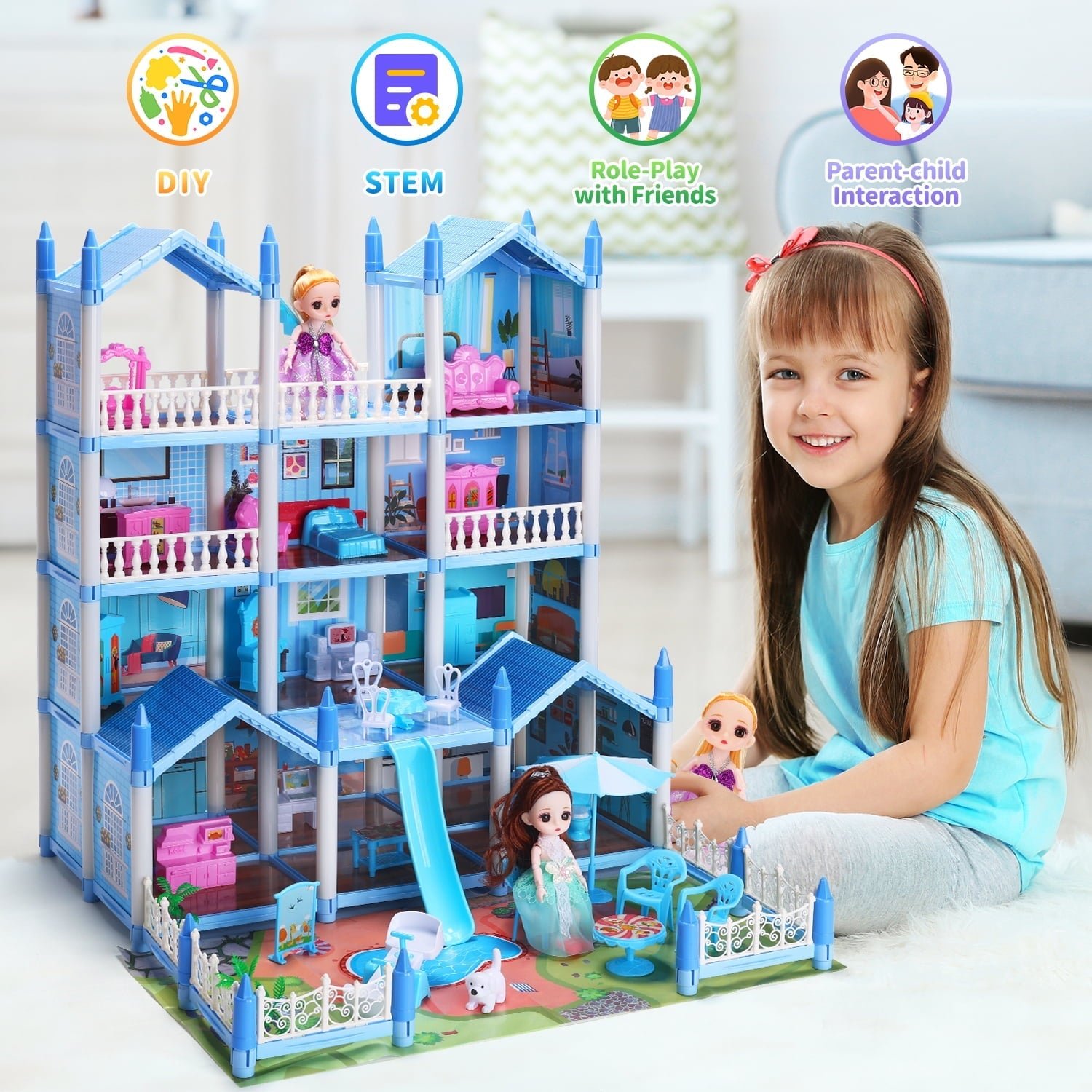 Every girl has their princess dreams, our 24″ dollhouse is the best choice for girls of age 3+! They need to build their own house by themselves, thereby promoting critical thinking and innovation among our dear kids. Parent-child interaction will make this process more interesting. Beyond the joy of play, these miniature worlds provide a platform for kids to engage in role-playing, storytelling, and problem-solving. Through interacting with a dollhouse, children gain valuable insights into various household tasks and responsibilities, contributing to their holistic development.Our dollhouse with 14 rooms furniture and accessories and 2 dolls, kids can create their own stories for dolls. Just give it to your child as a gift wrapped with a big ribbin, or quietly build a beautiful dollhouse and surprise them!