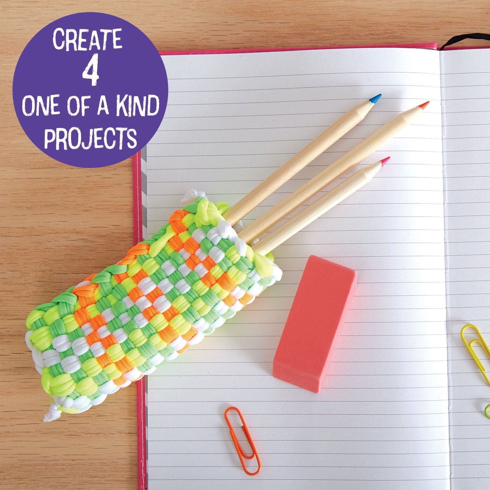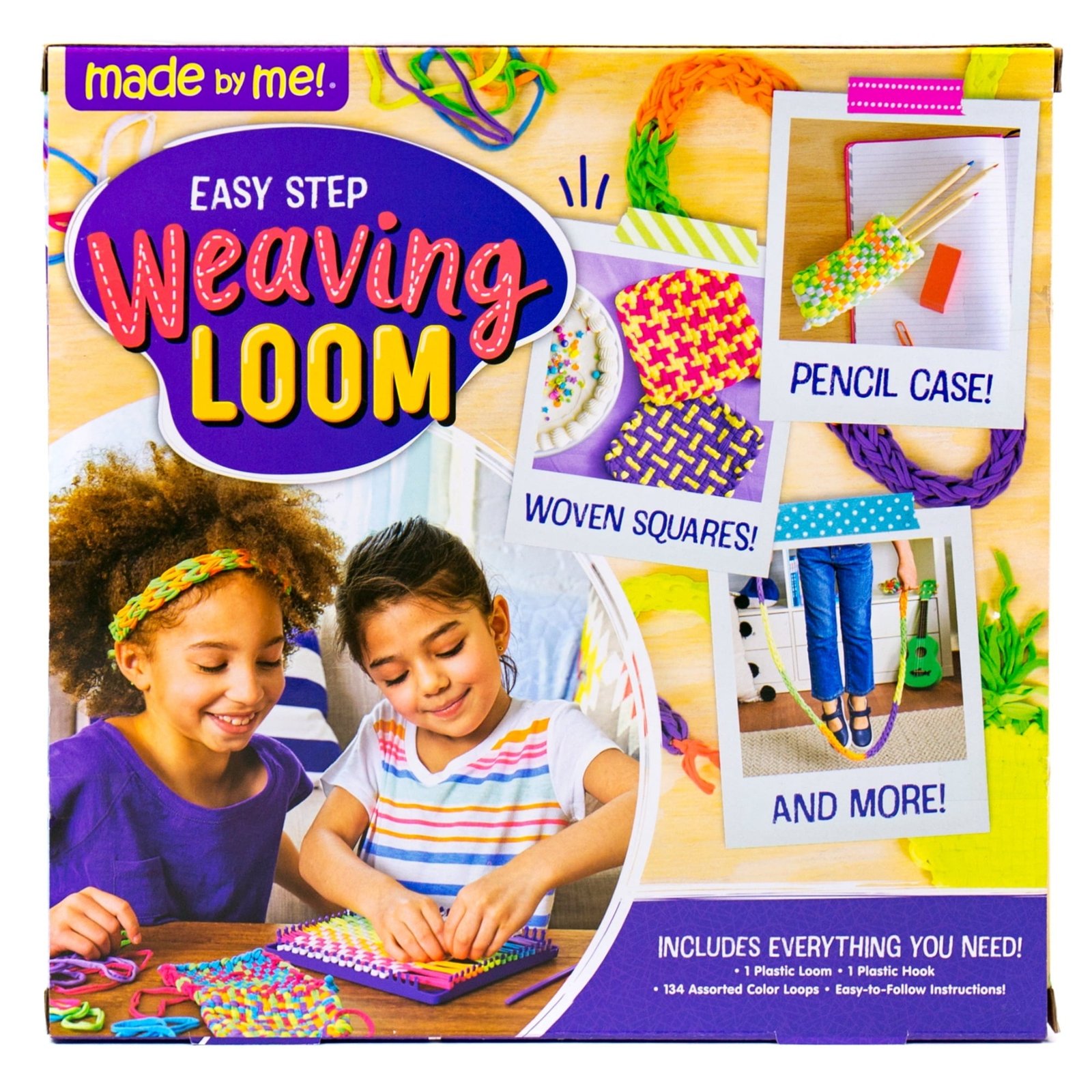 Weave your way into a world of creativity with the Made by Me! Easy Step Multi-color Weaving Loom, Unisex, Child, Ages 5+! With over 130 bright-colored loops, an easy-to-use weaving loom, crochet hook, and step-by-step instructions—you can jump right in and start creating, even as a first timer. Watch your designs come to life as you weave and connect each vibrant loop on the loom—without any needles, scissors, or glue. Recommended for ages 5 and up.